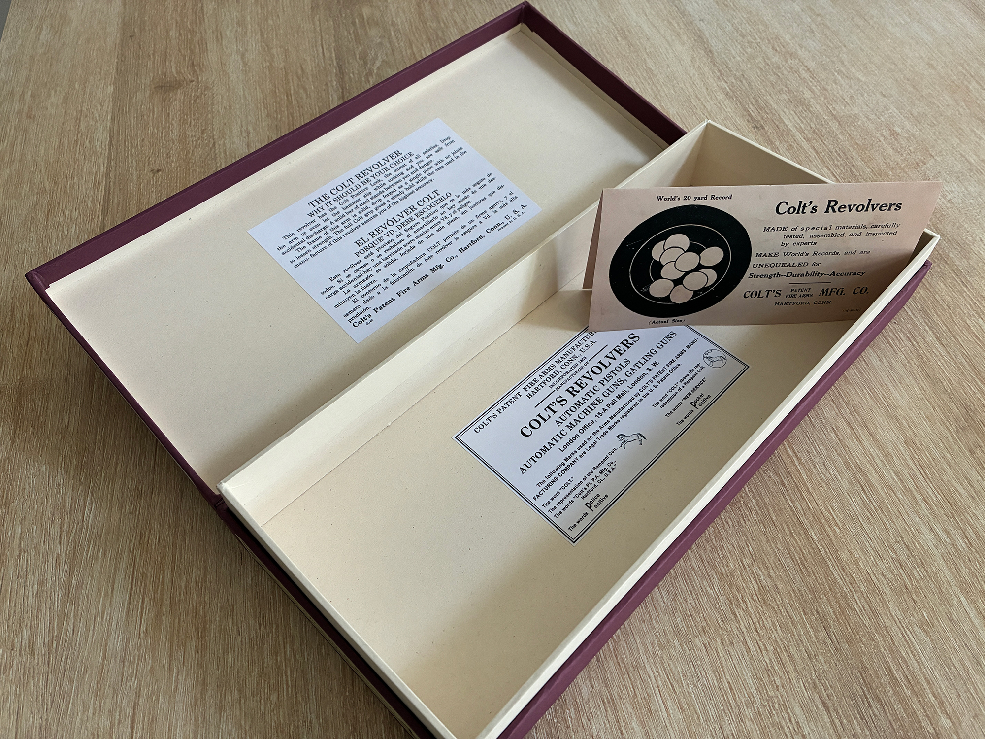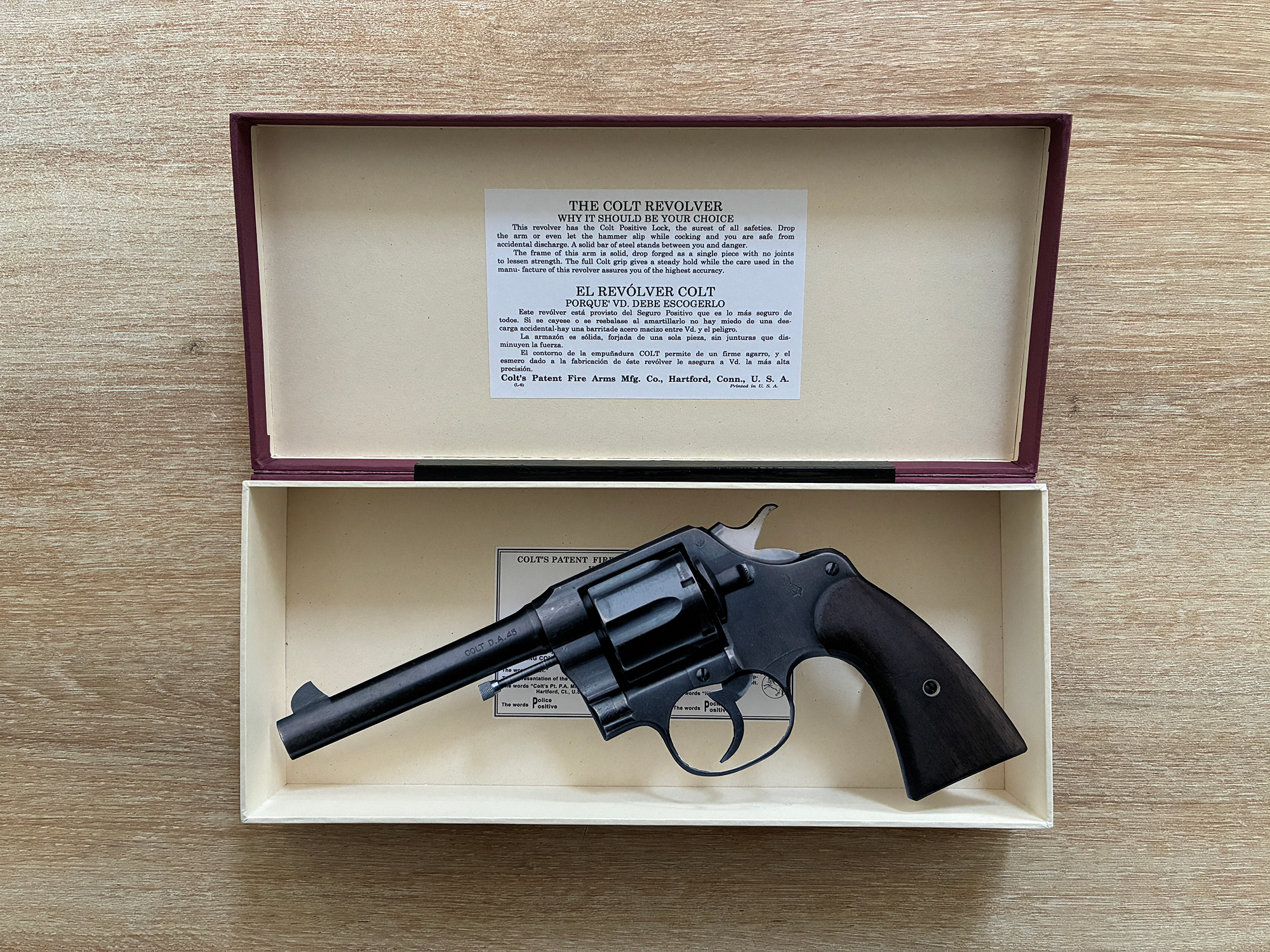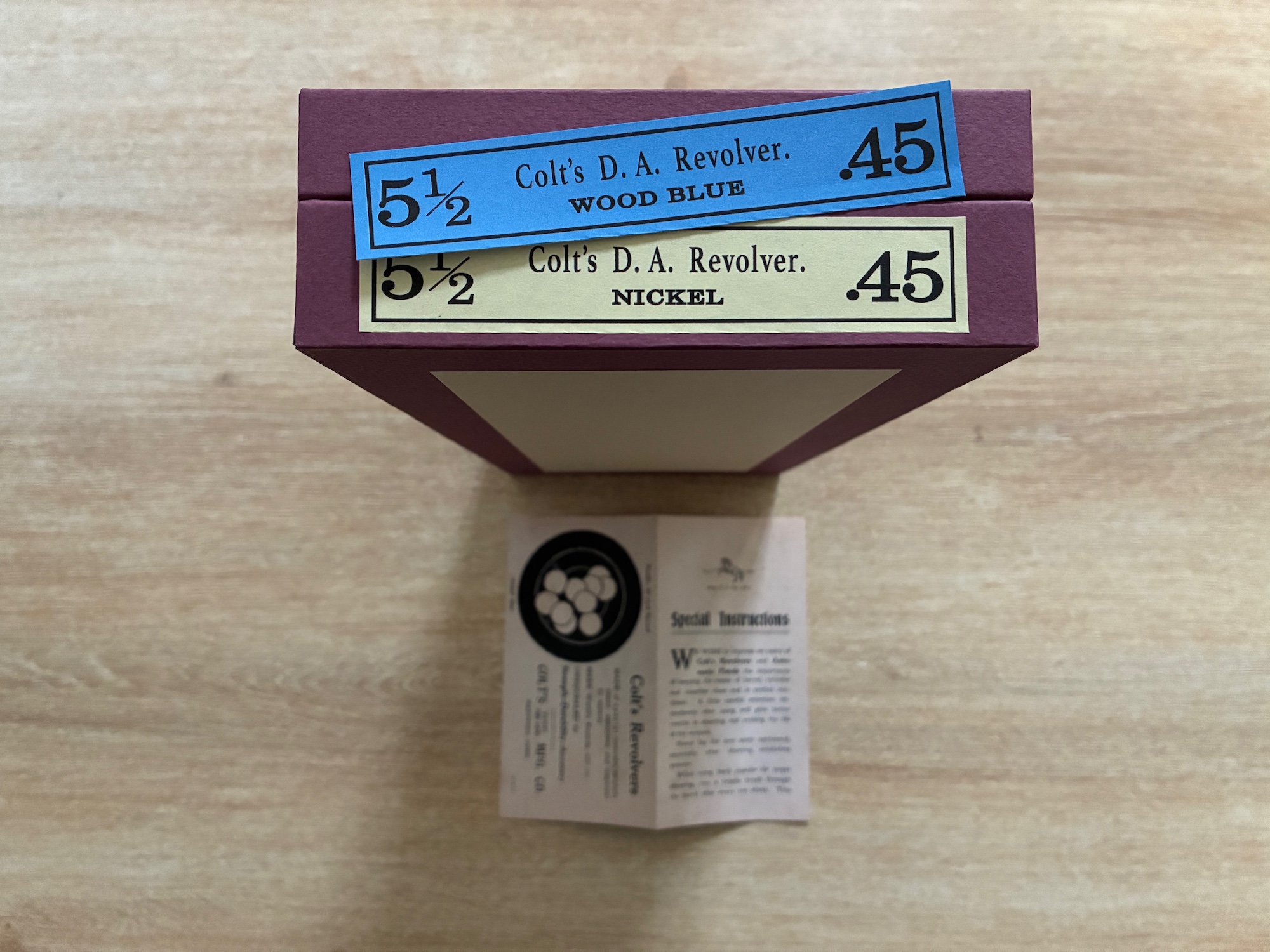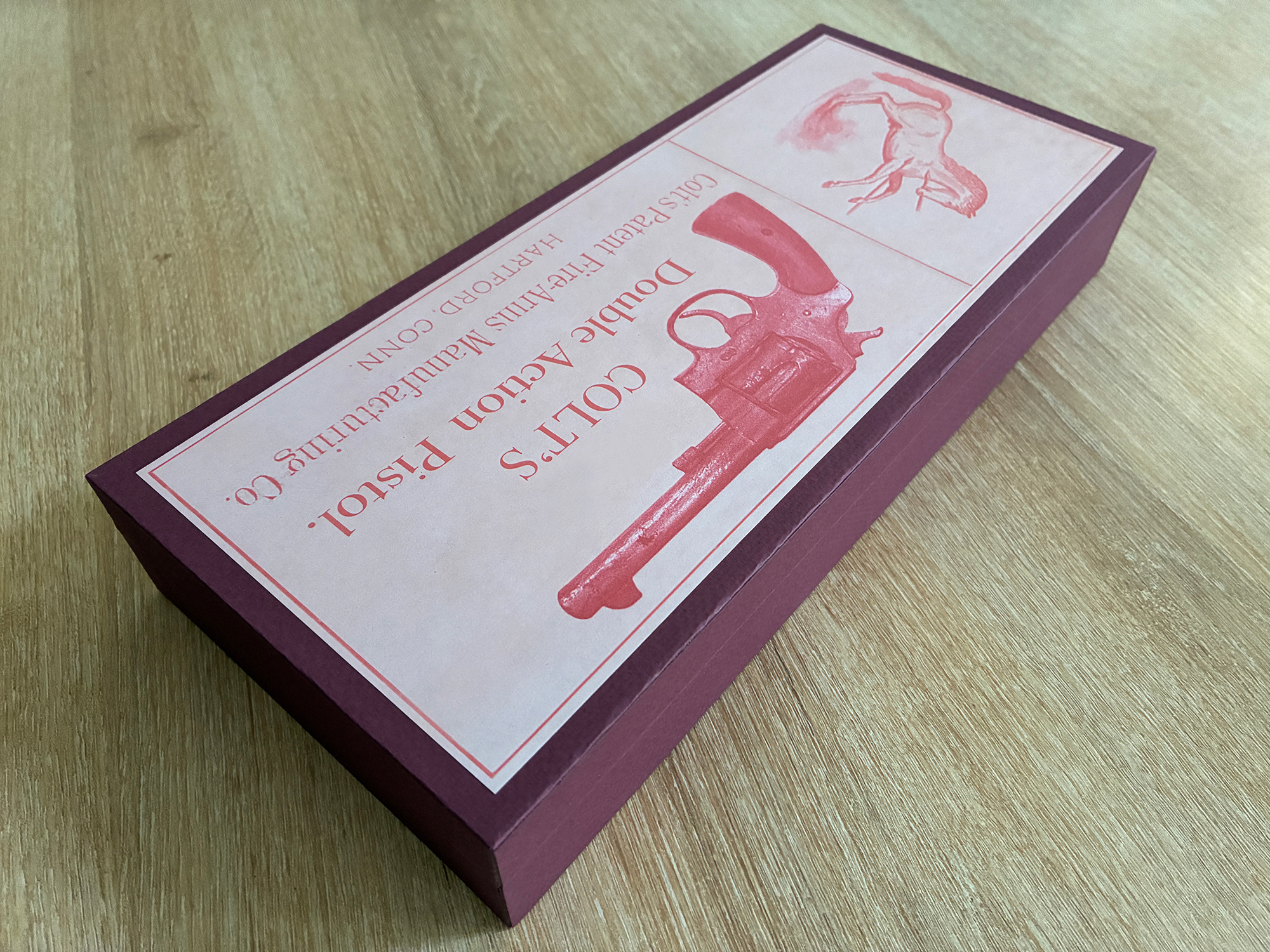 Hand-made replica storage box for Colt DA .45 Caliber revolver 5.5″